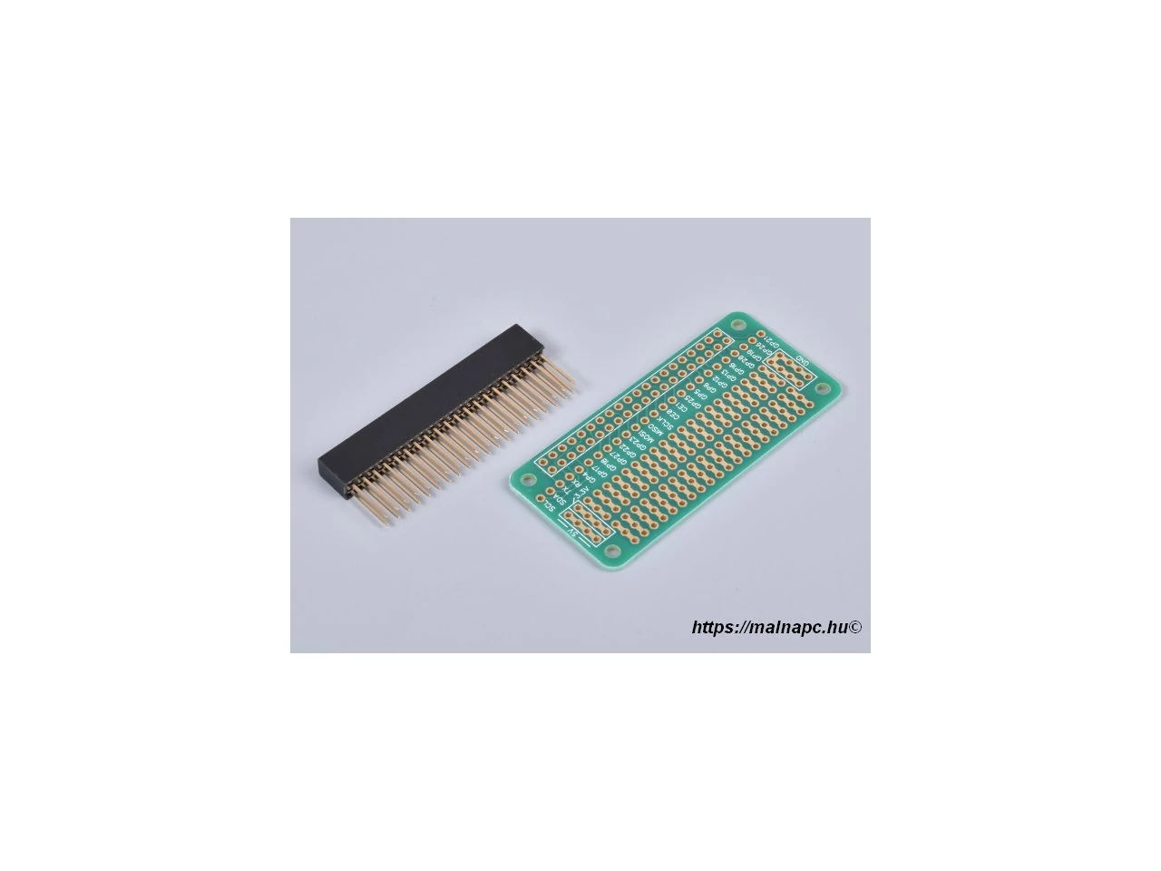 A lapot forrasztásra kész szettben szállítjuk, egy 40 tűs hüvelysávval, amely illeszkedik a Raspberry Pi alaplapok 40-es GPIO tüskesorához.