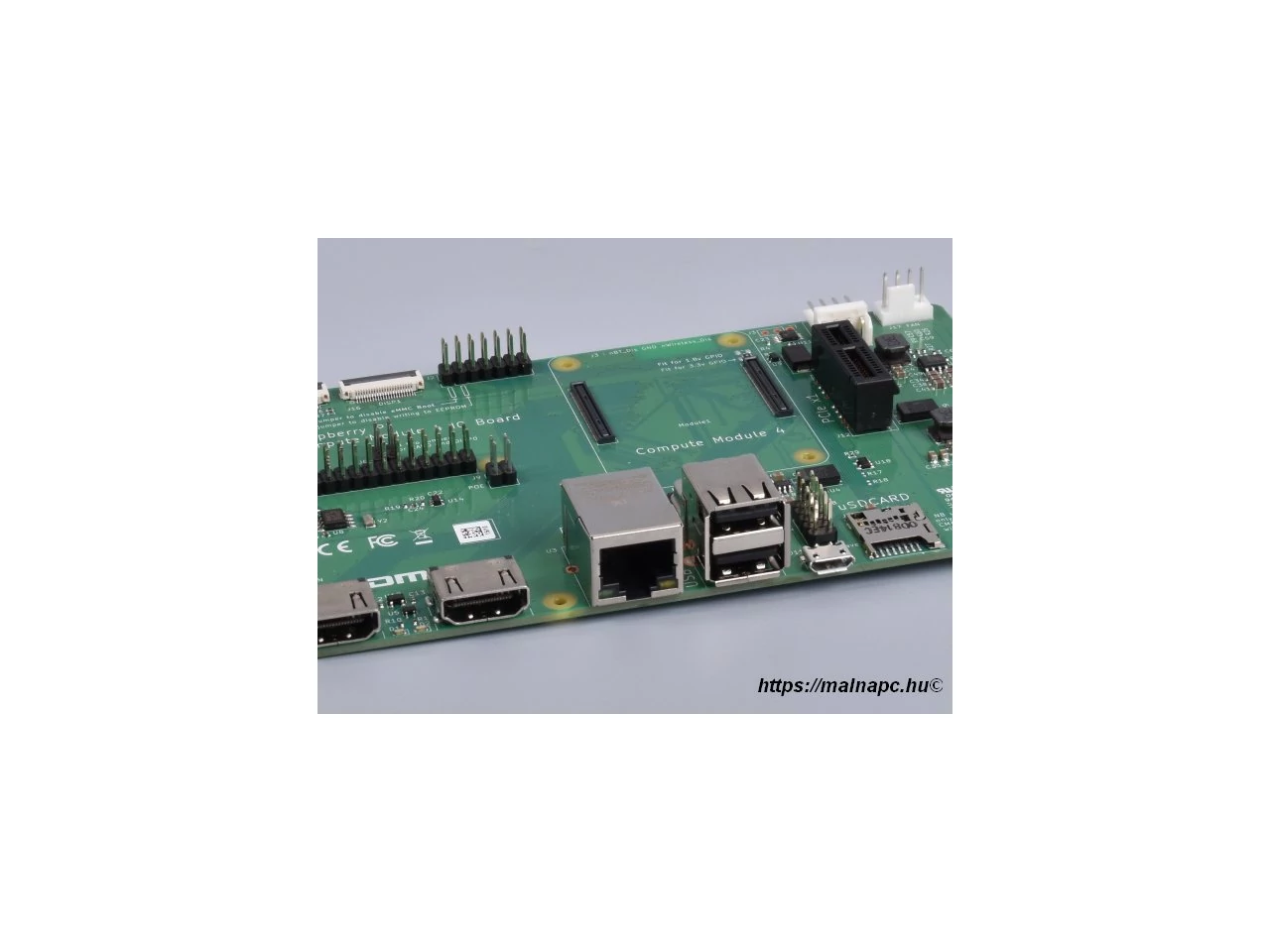 Raspberry Pi Compute Module 4 IO Board a Raspberry Pi Compute Module lapkákhoz készített fejlesztői rendszer, mely biztosítja a szükséges perifériákat a fejlesztés és tesztelés során.