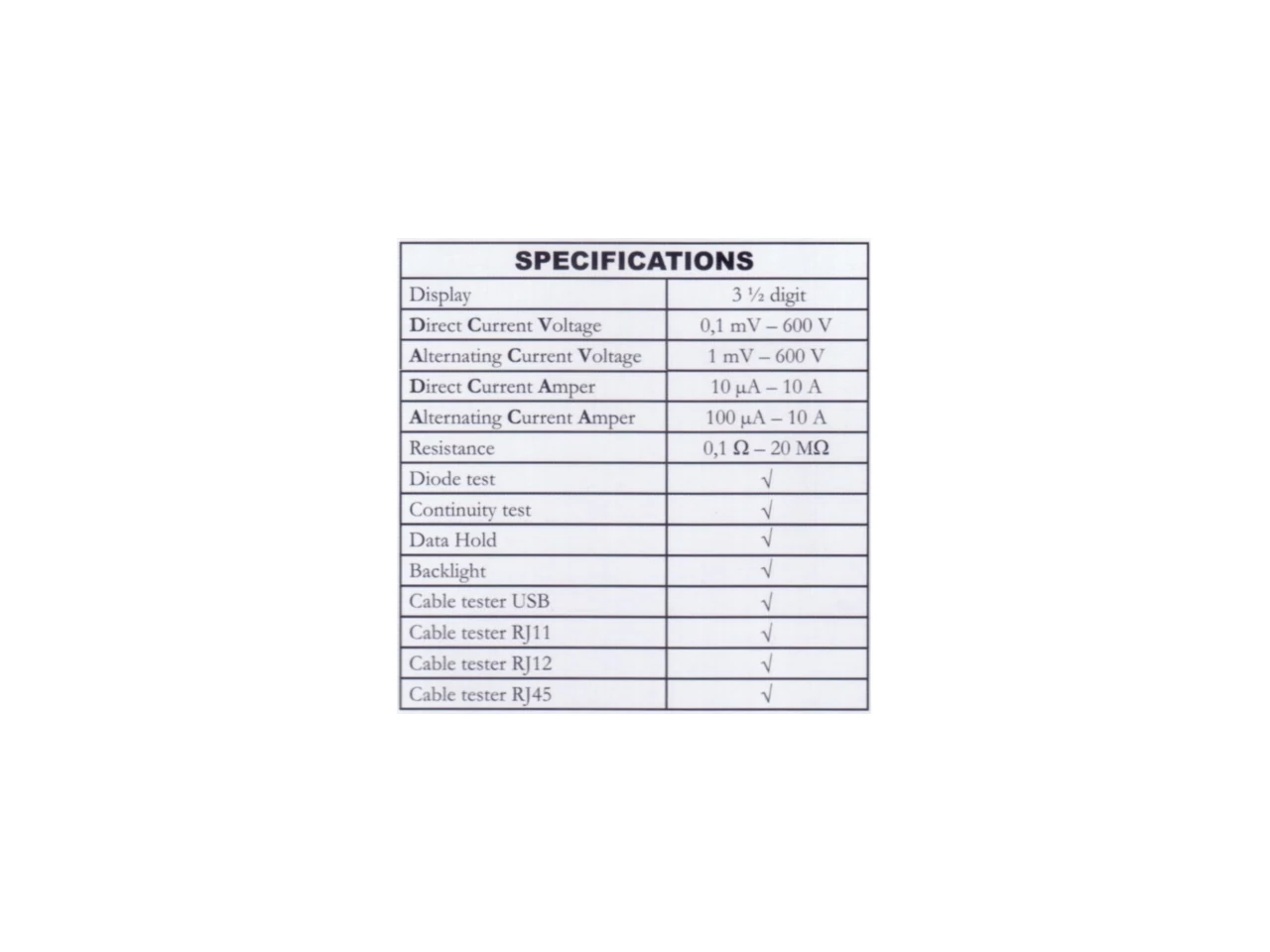 | DC V: | 0,1 mV - 600 V |