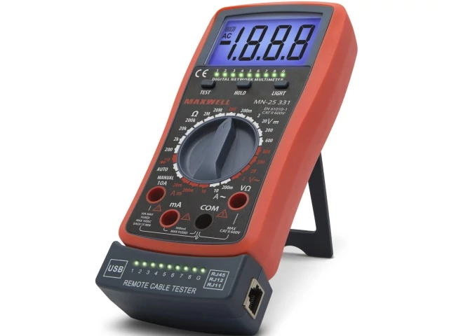 2 az 1-ben műszer, általános multiméter funkciókkal, kábeltesztelő egységgel kiegészítve. A kontroll egység levehető és szabadon hordozható. RJ11, RJ12, RJ45 és USB vezetékek teszteléséhez alkalmazható.