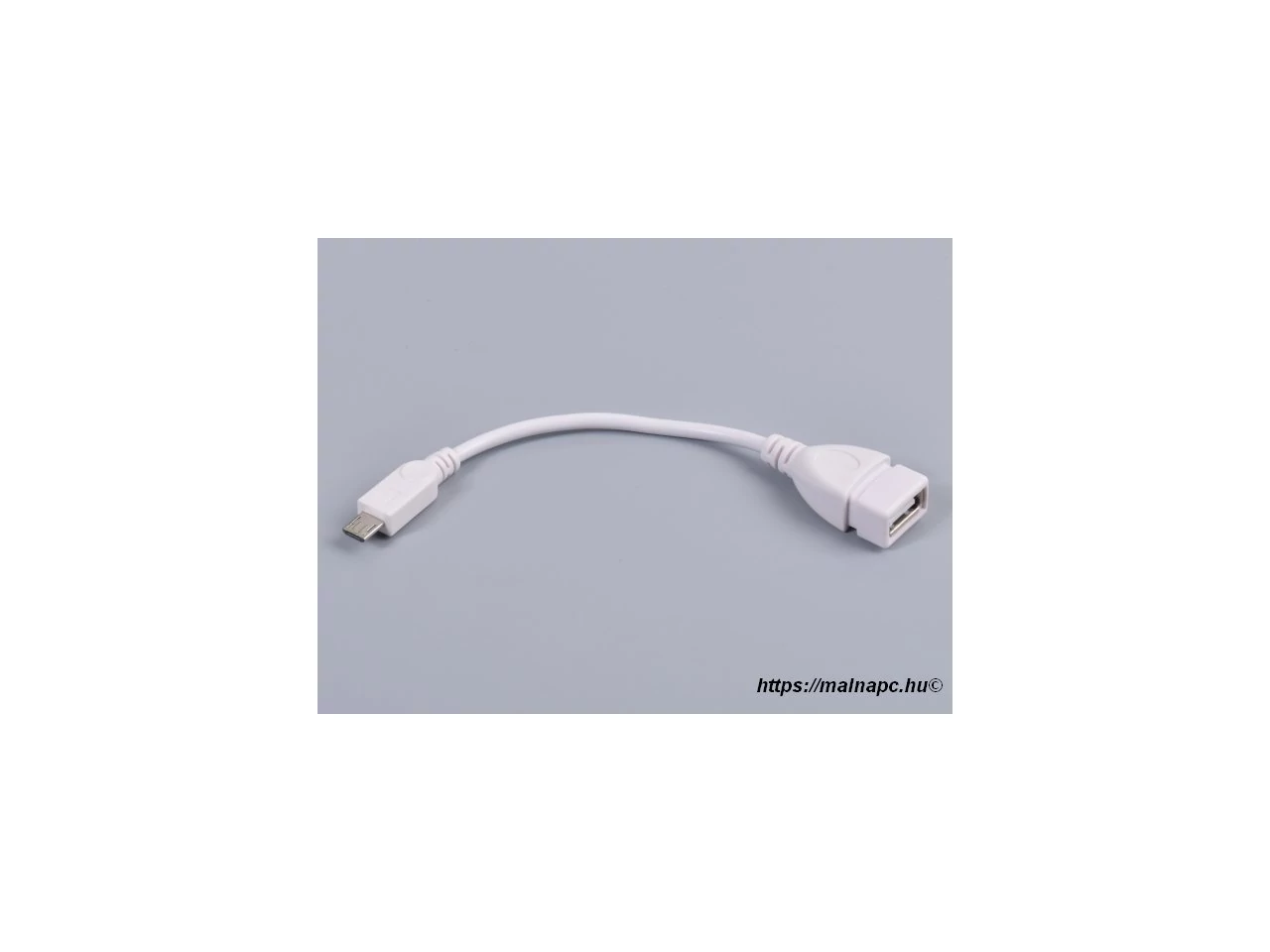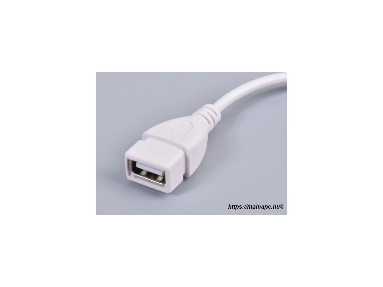 Raspberry Pi Zerohoz OTG adapter kábel 10cm, fehér, USB-B Micro dugóval és USB-A aljzattal.