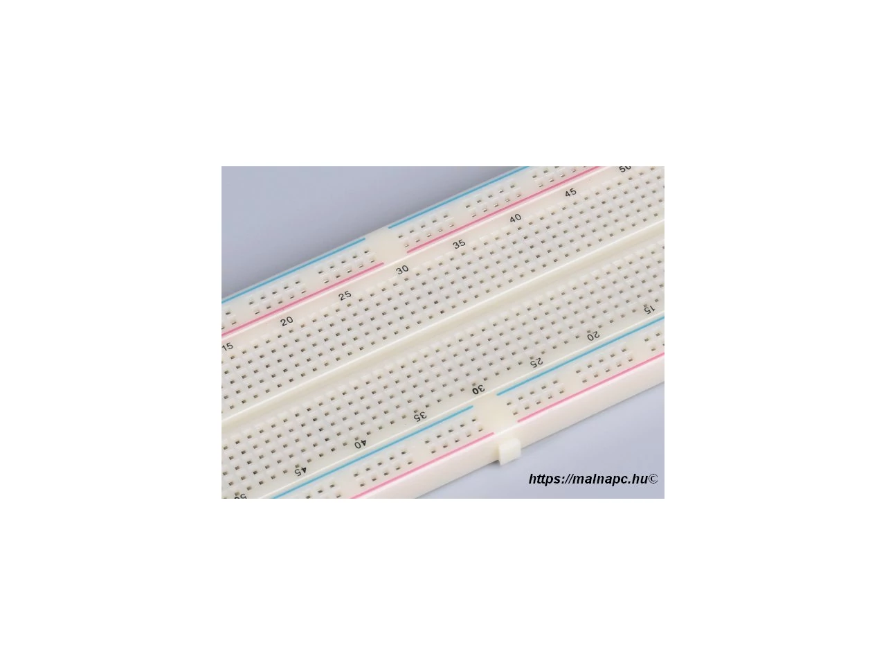 Ennek a 840 csatlakozási ponttal rendelkező próbapanelnek ( breadboard ) a segítségével egyszerűbb áramköri kapcsolások forrasztás nélkül valósíthatóak meg a Raspberry Pi vagy Arduino projektedhez. Az összeköttetések létesítéséhez egyes csomagok tartalmaznak pár jumpert, de ez nem minden szállítmánynál biztosított. Választhatsz hozzá jumper készleteinkből kedved szerint!