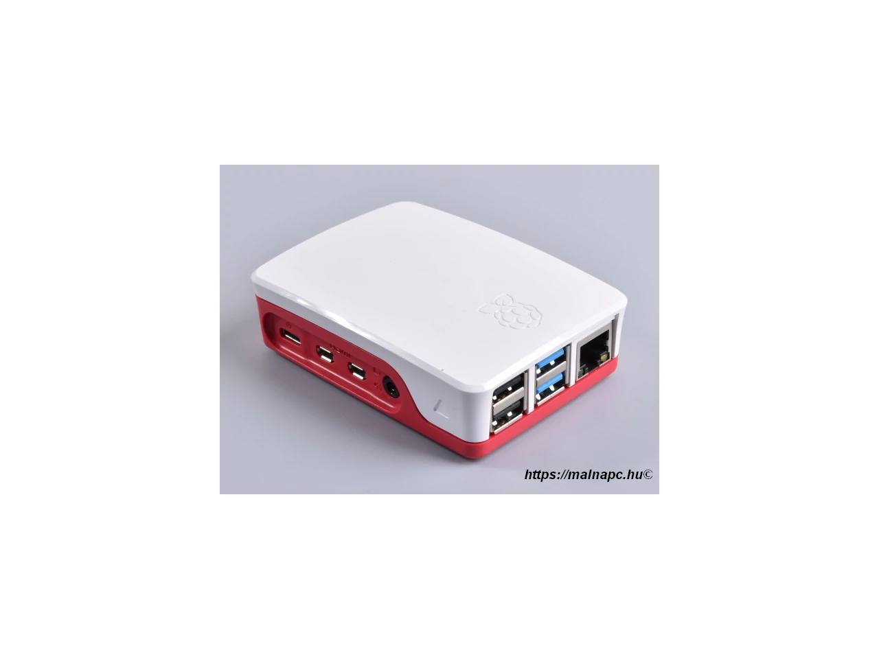 Official Raspberry Pi 4 case RED/WHT - A Raspberry Pi 4-es sorozat hivatalos gyári doboza, piros/fehér színkombinációban.