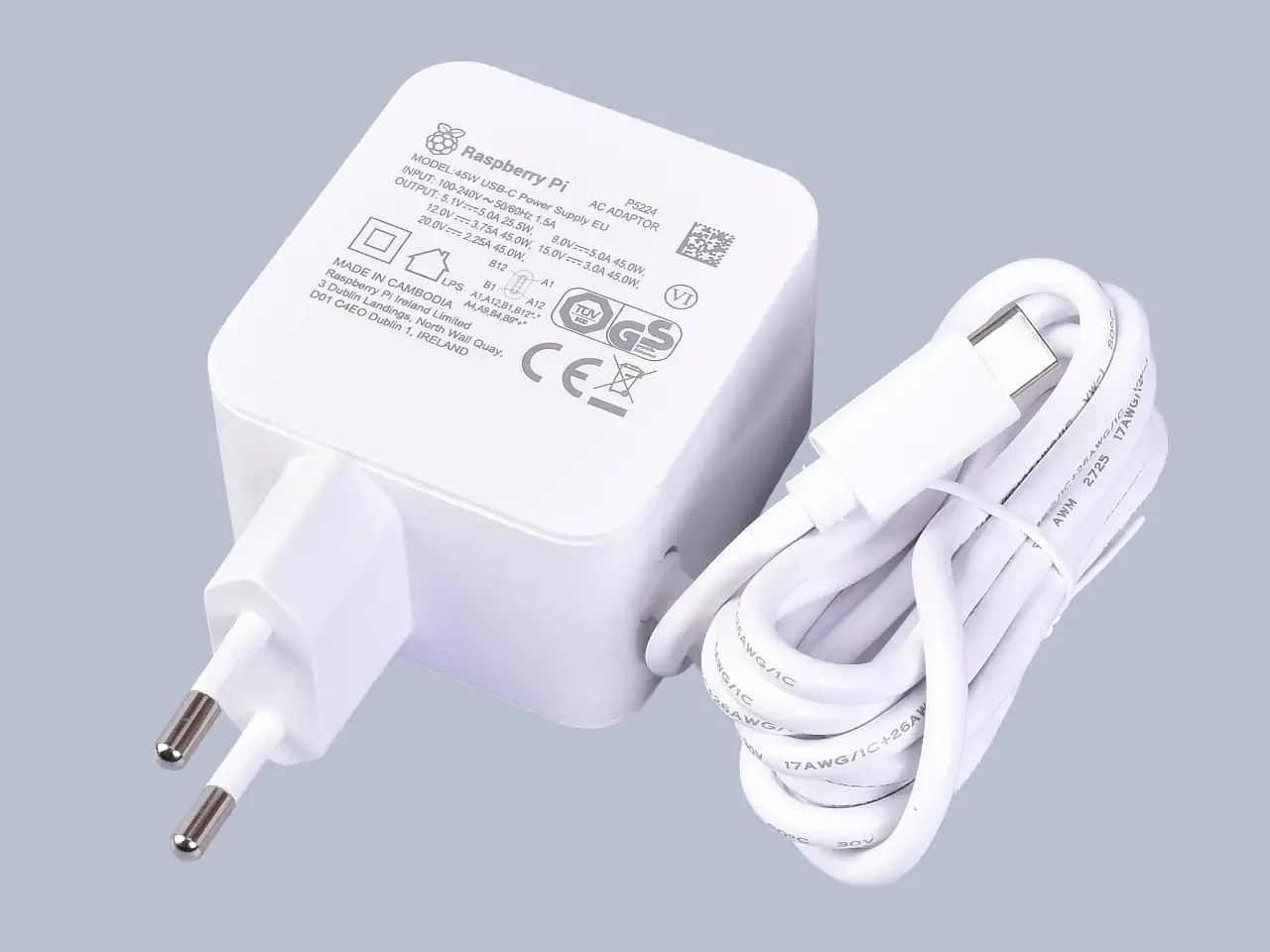 Raspberry Pi 45W USB-C PSU műszaki paraméterei: