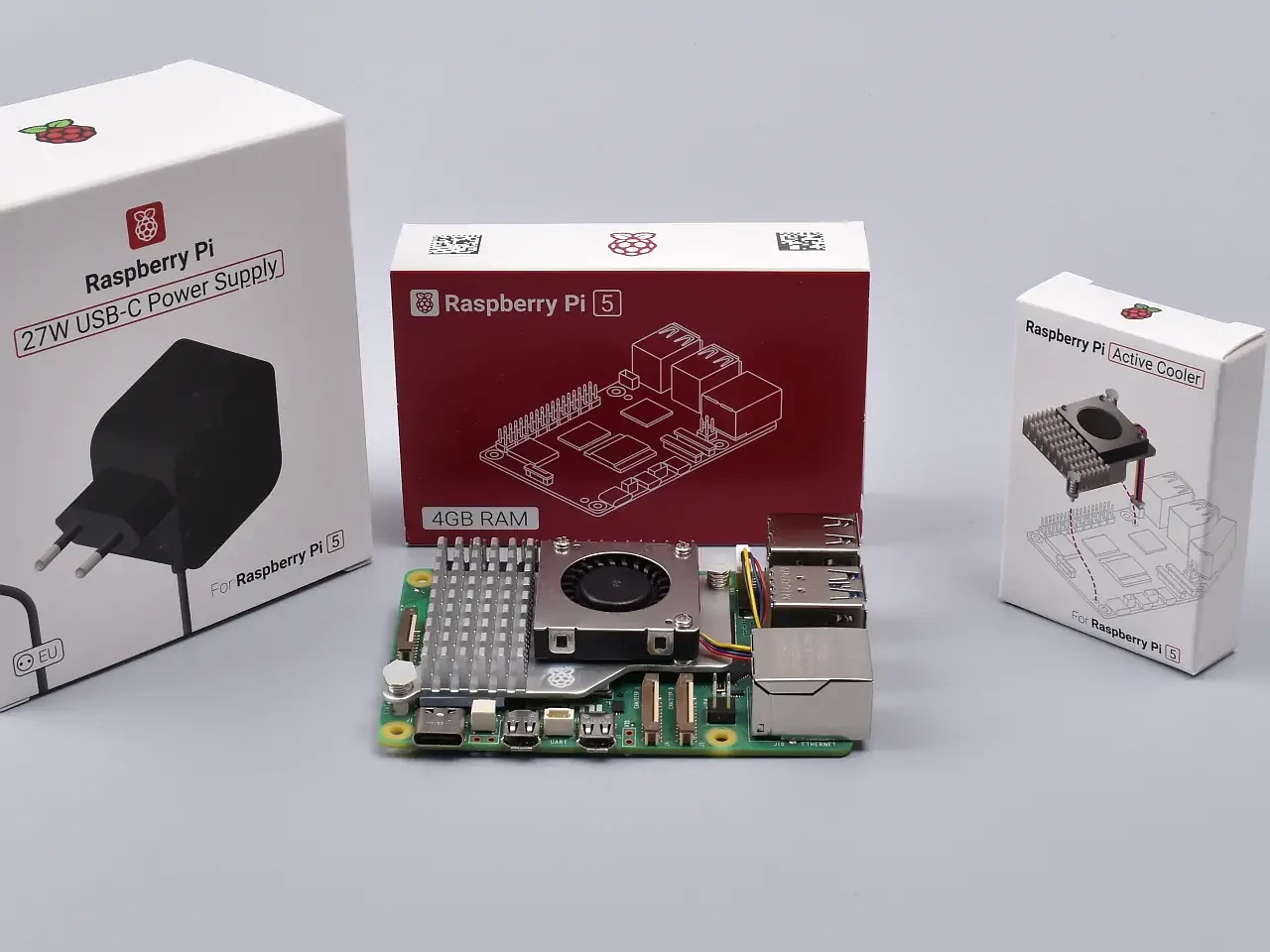 Raspberry Pi 5 Cooler KIT 4GB - összeállítás a Raspberry Pi ötödik generációs termékeiből azon felhasználóknak, akik tartósan nagy terhelés mellett és burkolat nélkül használnák az alaplapot. Válassz hozzá egy gyors SD kártyát, illetve szükség szerint HDMI kábelt vagy átalakítót!