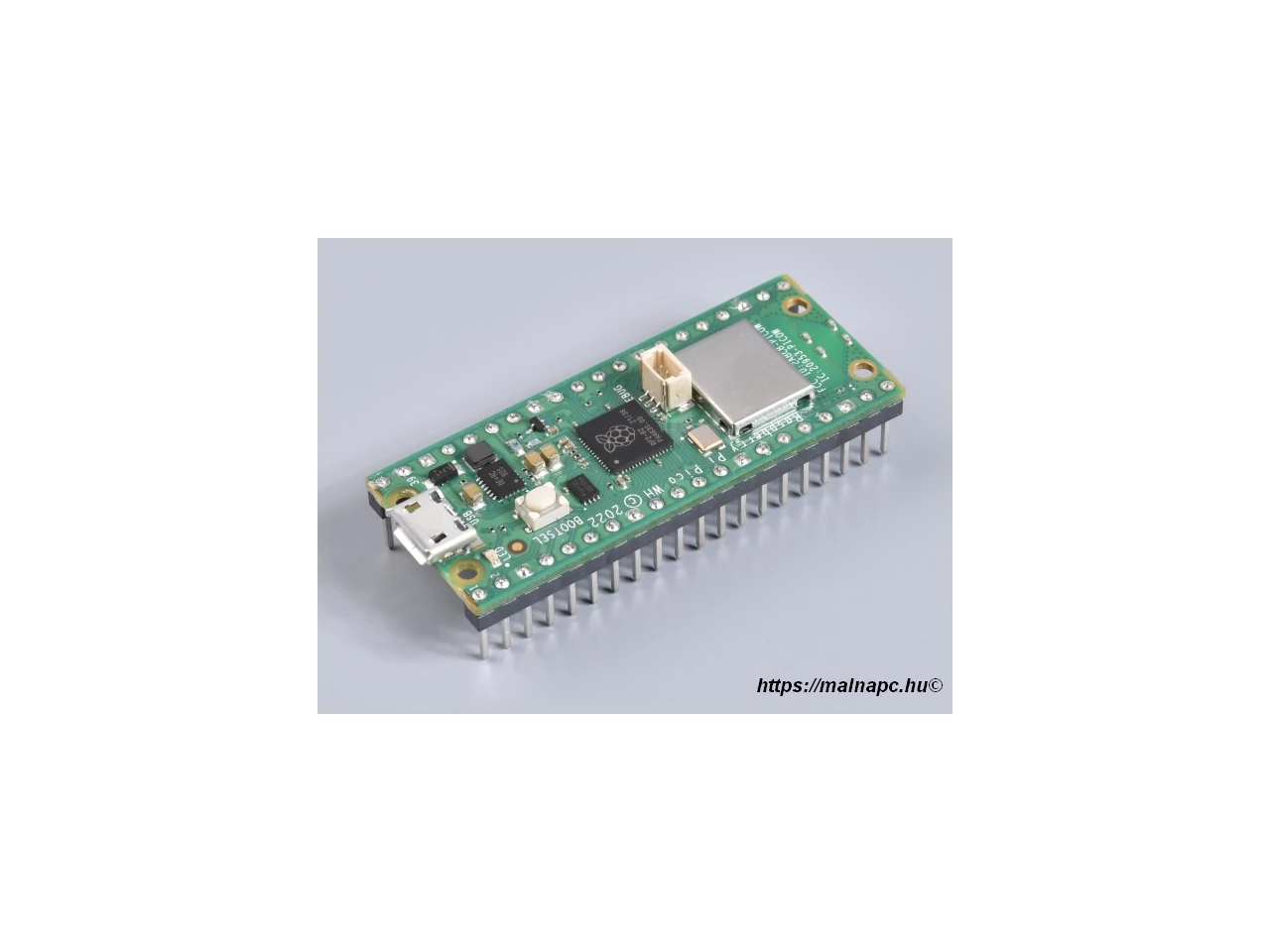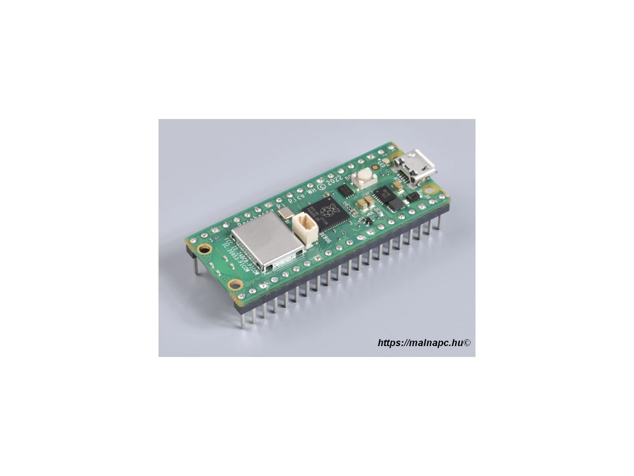 A Raspberry Pi Pico WH változat gyárilag beforrasztott tüskesorral (H=Headers) kerül forgalomba, így próbapanelen végzett munkákhoz egyszerűbb a használata.
