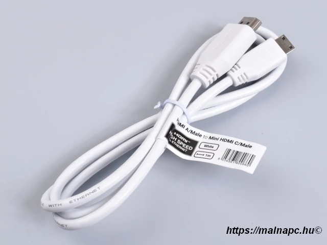 Raspberry Pi Zerohoz mini-HDMI / HDMI kábel, fehér színben, melyet a Raspberry Pi Zero modellekhez terveztek.