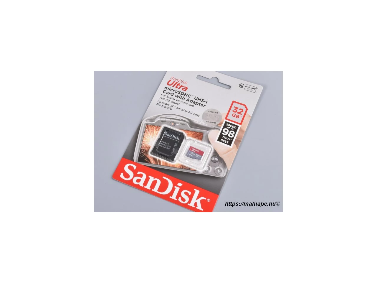Sandisk 32GB microSD Ultra kártya SD adapterrel és 10 éves garanciával!