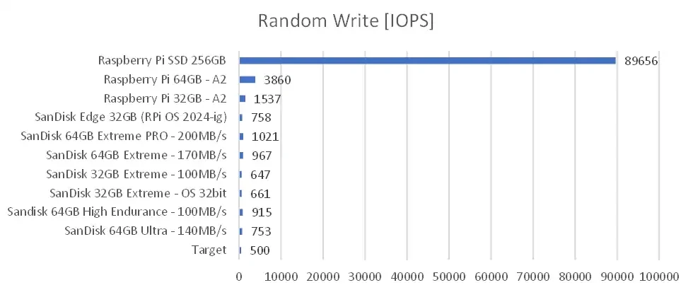 - Randon write speed target: 500 IOPS (Input/Output Operations Per Second)