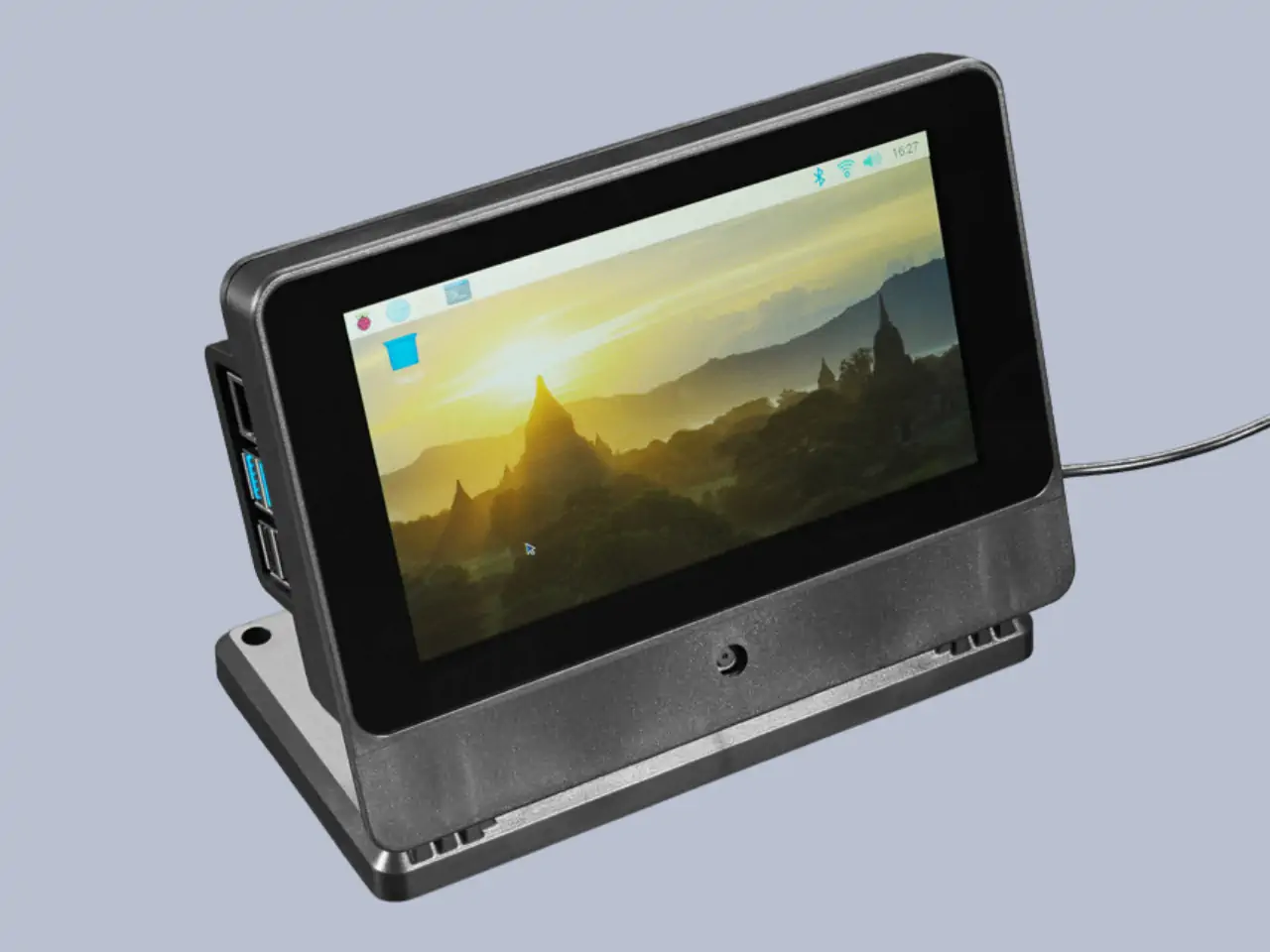 SmartiPi Touch Pro (Raspberry Pi 3, 4, 5 compatible) - egy kiválóan megtervezett állvány, amely elegáns és stabil megjelenést biztosít a Raspberry Pi 7"-os érintőképernyős kijelző és egy Raspberry Pi 3, 4 vagy 5-ös alaplap számára. Igen, már kompatibilis a Pi 5-tel, de kizárólag a Raspberry Pi Touch Display DSI 800x480 kijelzővel használható és nem jó a Touch Display 2-höz. A kijelző alatt van egy rögzítési pont is a Official Raspberry Pi camera 2 (8MP) és 3 (12MP) típusokhoz (nem kompatibilis a Raspberry Pi HQ kamerával). A kamera teljesen elrejthető a mellékelt ragasztópanel segítségével. A ragasztópanel saját logóval is testre szabható! Ez a burkolat egy minden egyben Raspberry Pi számítógépet hoz létre egyetlen USB-C porttal vagy microUSB porttal a hátoldalon, amely a burkolatban lévő komponensek áramellátását biztosítja. A Raspberry Pi vezérlő a kijelző mögé van szerelve, a portok pedig a kijelző szélével egy síkban helyezkednek el. Még egy ventilátor is jár hozzá, hogy a Pi-t hűvösen tartsa. A Pi 3, 4 vagy 5 számára mellékelt portblokkoló rész lehetővé teszi, hogy csak azokhoz a portokhoz legyen hozzáférés, amelyeket szabadon szeretnénk látni. A csomagban található egy második menetes betétkészlet is, hogy saját fejlesztésű kiegészítő panel lap vagy más hardver is felszerelhető legyen. Tökéletes ipari vagy kereskedelmi alkalmazásokhoz, ahol saját fejlesztésű kiegészítő panelt is szeretnénk még beépíteni. A tok fröccsöntött ABS műanyagból készült, így további testreszabáshoz fúrható vagy egyéb módon megmunkálható.