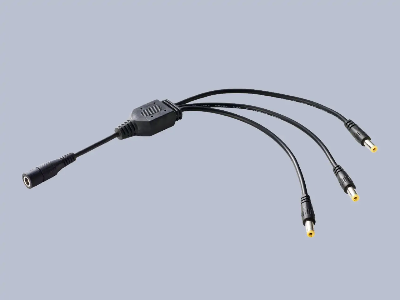 DC tápelosztó kábel. 1 aljzathoz csatlakozik 3 dugó. 2.1x5.5mm-es csatlakozókkal. Y- elrendezés.