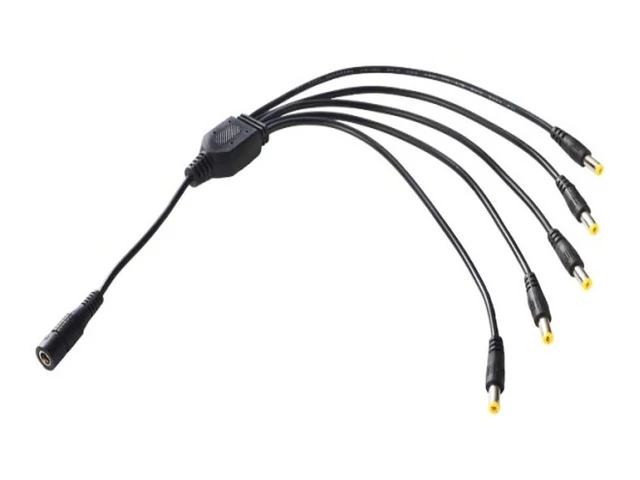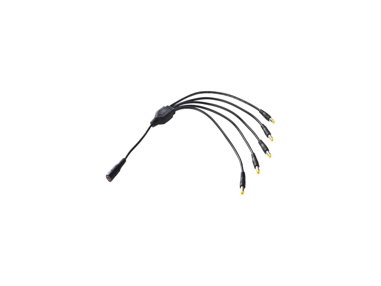 DC tápelosztó kábel. 1 aljzathoz csatlakozik 5 dugó. 2.1x5.5mm-es csatlakozókkal. Y- elrendezés.