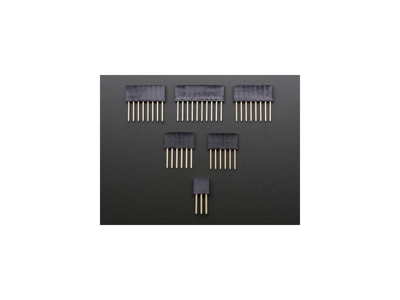 Az Adafruit Arduino bővítő csatlakozó szettje az egyszerő és mégis nagyszerű bővítés lehetőségét kínálja, akár prototípus próbapanelekkel, bővítő panelekkel vagy alaplapokkal dolgozunk. A szett R3 kompatibilis és az alábbi 10,5mm-es lábhosszúságú csatlakozókat tartalmazza: