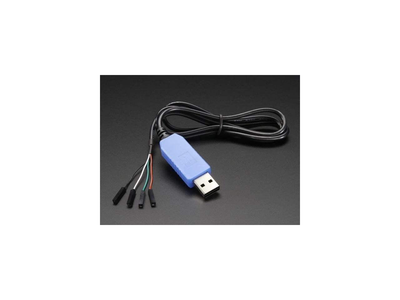 Ez a kábel a legegyszerűbb módja, hogy mikrokontrollerhez, Raspberry Pi-hez, vagy WiFi router-hez soros konzol portot csatlakoztass. Az USB csatlakozó belsejében van egy USB - soros átalakító chip, valamint a 36"-os kábel végén található 4 vezeték, vörös - áramellátás, fekete - föld, fehér RX - USB portba és zöld TX - ki az USB portból. Az áramellátásért felelős pin biztosítja az 5V-os, 500mA-es áramot az USB portból, továbbá az RX és TX pinek 3.3V-on üzemelnek, hogy használni lehessen a legáltalánosabb 3.3V-os logikai szintű chipeket.